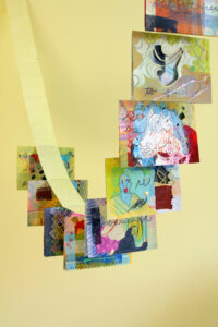 Students learn paper decoration techniques – paste paper, gesso monotypes, other surface design/drawing techniques to add visual content.