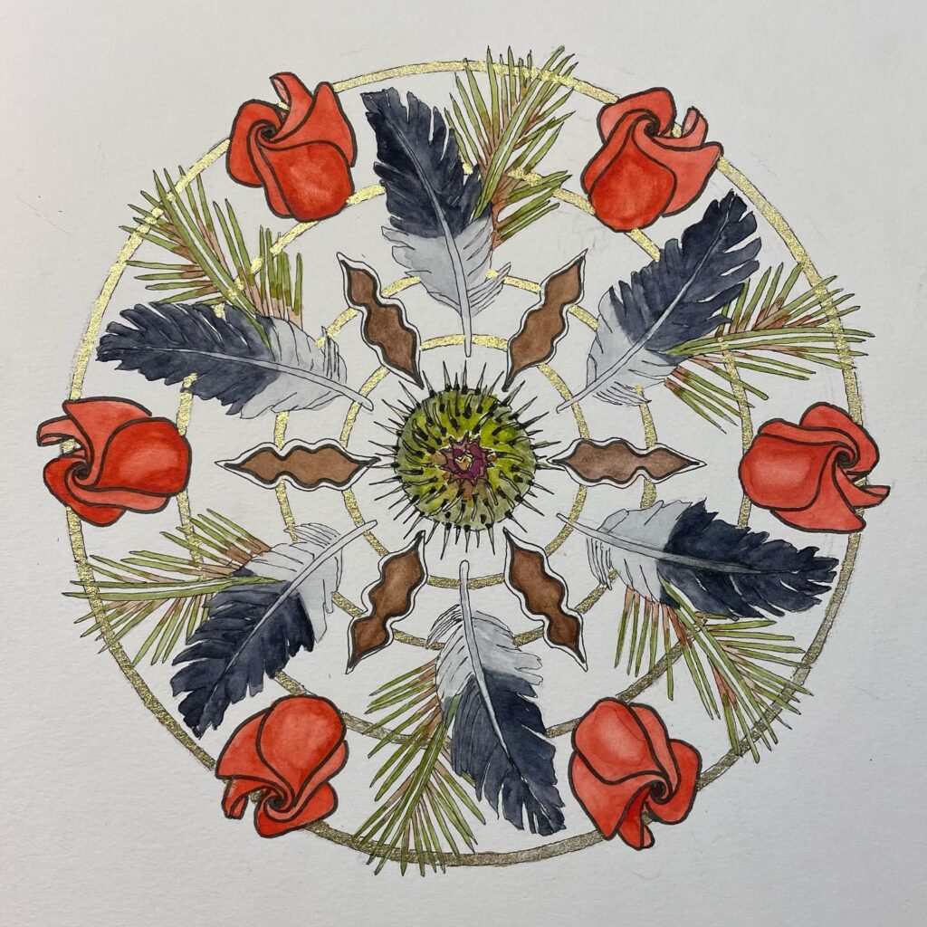 Facilitate the technical learning of mandala construction and basic watercolor skills, as well as host a space for meditative and healing encounters with the Creative Spirit.