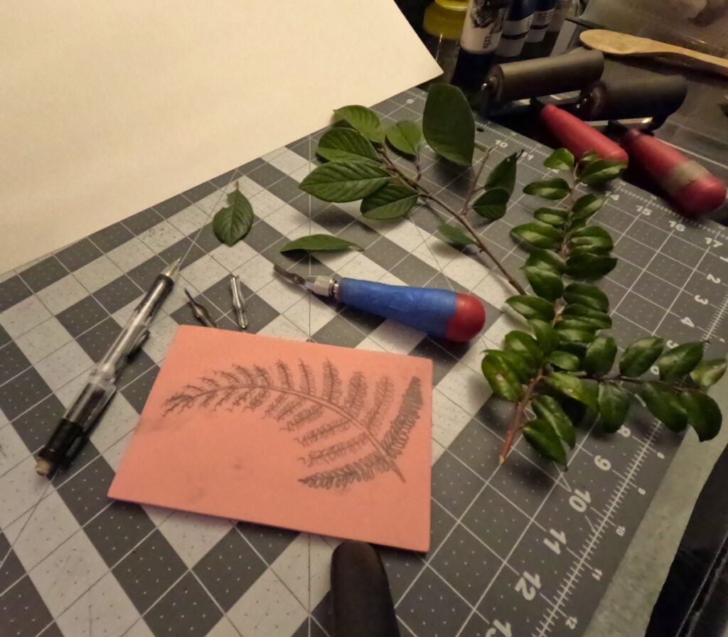 At the end of the course I hope to have everyone participate in a print exchange as well as print on one piece all together to create an offering to the Guild and the grounds it resides on as a thank you for its inspiration and hospitality.