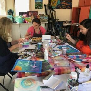 Inside everyone is a Muse, a creative, sacred life force that inspires you, whispers in your ear, and asks unexpected, soul stirring questions, if you’re open to listening. Together, we’ll connect to your Muse as a creative partner and loving guide through a heart-opening process of visioning and creating mixed media art using acrylics, watercolors, nature’s bounty, and all sorts of mark making and collage materials.