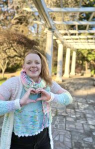 Becky Anne Smith (she/her/they) has been a fiber artist from a young age – 30 years in total! She began weaving at 8 years old when an interactive exhibit at a history museum gave her the tools and instructions to start. Weaving in particular has caught her interest as an expansive and creative process. She does tapestry weaving, band weaving, and multishaft weaving. In addition, she crochets, knits, spins, teaches, and dyes hand-painted yarns to sell. You can find Becky’s work at www.panfranknitco.com.